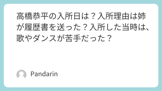 高橋恭平 高橋恭平の入所日は?入所理由は姉が履歴書を送った?入所した当時は、歌やダンスが苦手だった? こんにちは。なにわ男子は、今、とっても人気のアイドルグループです。なにわ男子は、いつもキラキラしていて、なにわ男子の曲を聴くだけで、とってもHAPPYな気分になりますよね。そんな、なにわ男子ですが、今回は、なにわ男子メンバーの1人、高橋恭平... 2026.03.25 高橋恭平
