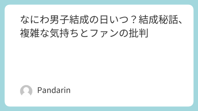 なにわ男子結成日いつ?結成秘話、複雑な気持ちとファンの批判