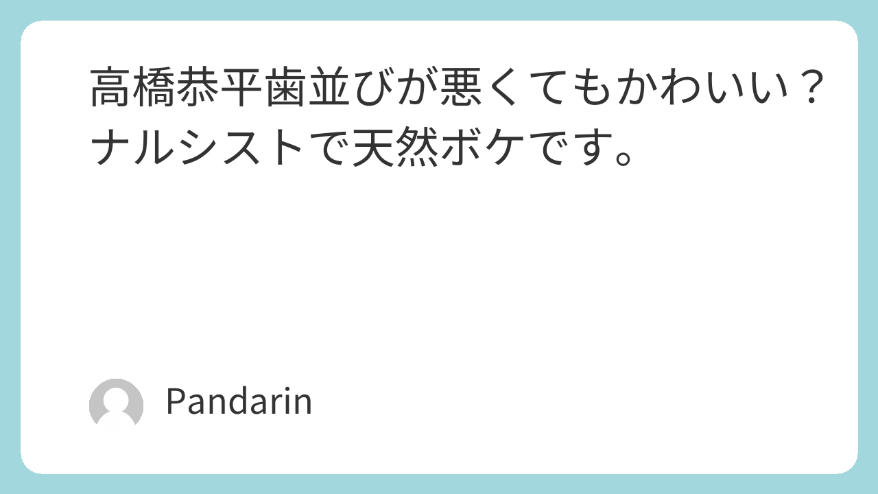 高橋恭平、歯並びが悪いのもめちゃくちゃかわいい~!!